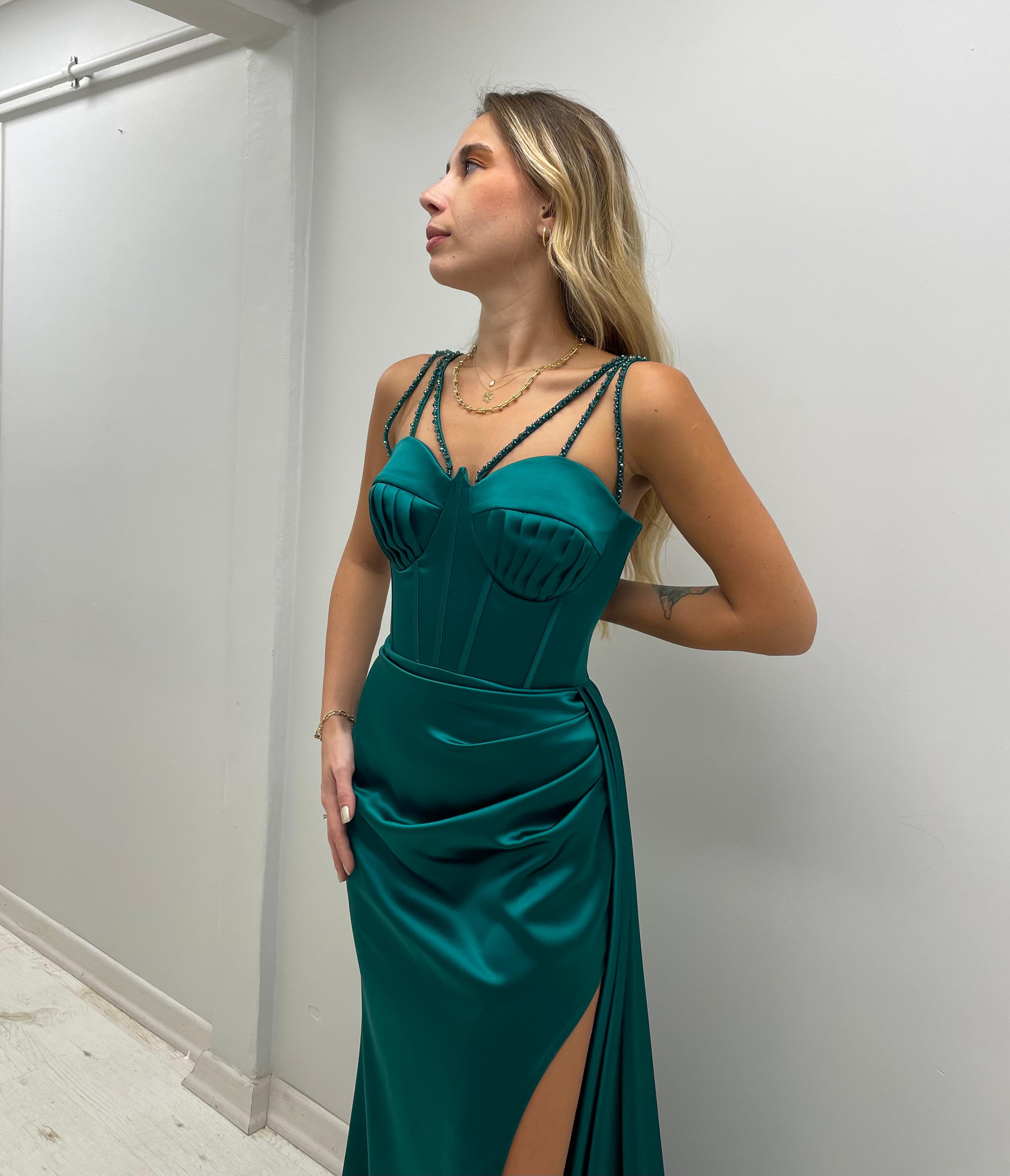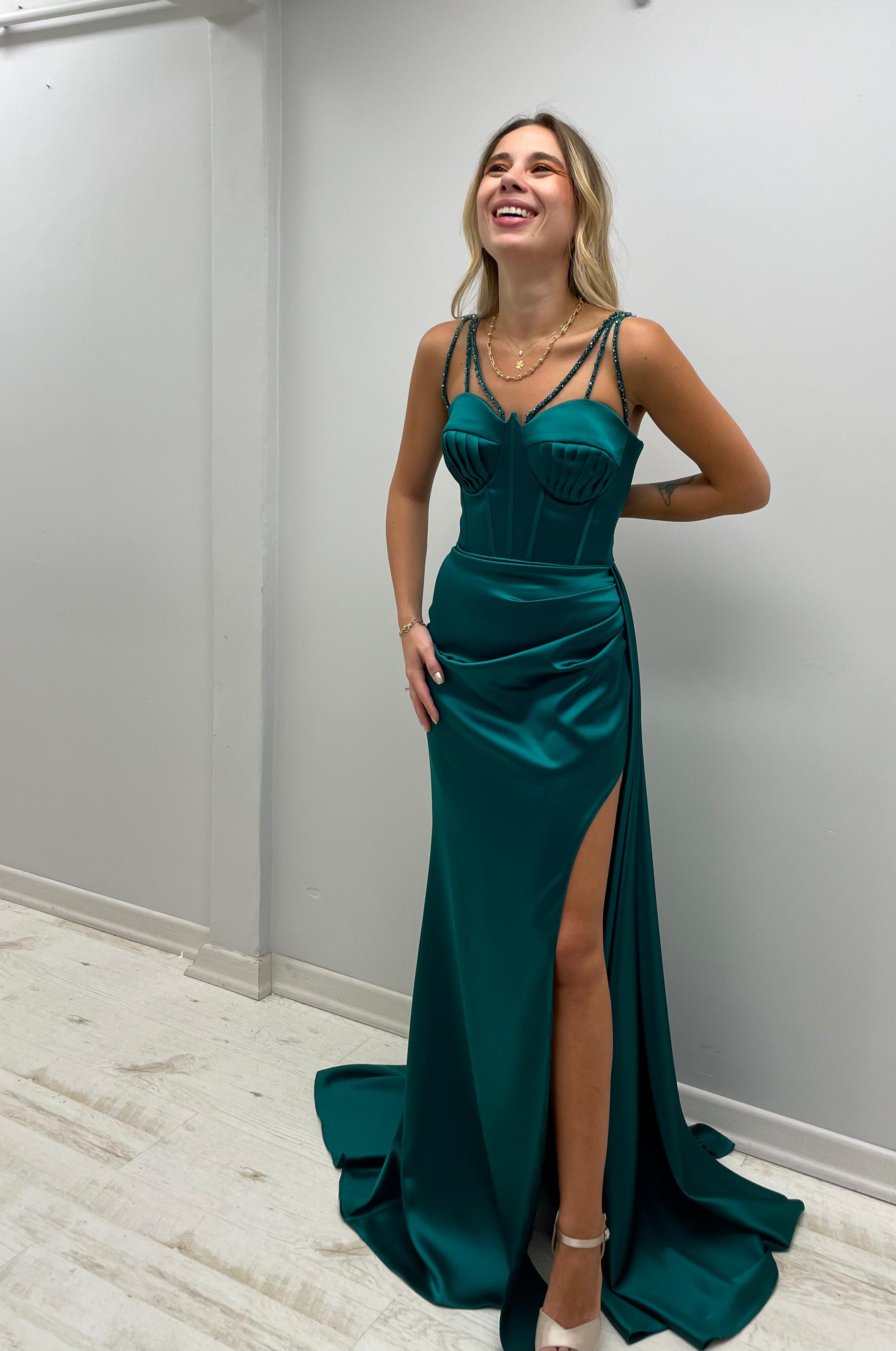 Taş Askılı Midye Kabuğu Göğüslü Elbise
