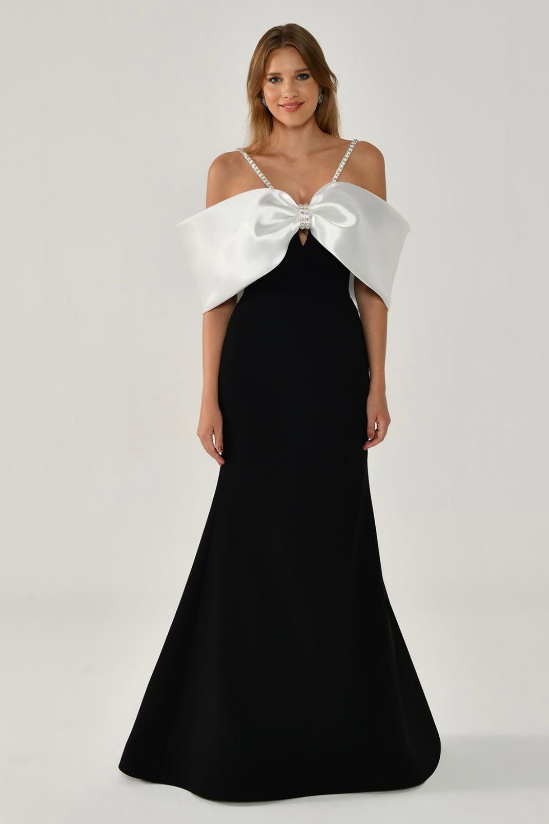 Elbisenin en önemli özelliklerinden biri, ip askılı ve düşük omuz tasarımıdır. Bu detaylar, kadının omuzlarını ve dekolte bölgesini zarifçe ortaya çıkarırken, aynı zamanda cesur ve şık bir görünüm sağlar. Bu sayede, kendine güvenen ve tarz sahibi kadınlara mükemmel bir seçenek sunulmuştur.